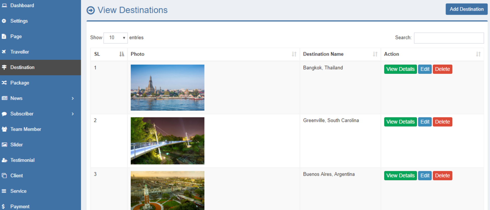 TMS is a responsive, user-friendly and easy travel agency management system with online booking system. Using this CMS, travellers can check the destinations and see offered packages and then they can book their seat for that particular travel. Traveller can pay online via paypal, stripe or bank. Then admin will communicate with the traveller and start processing the journey.